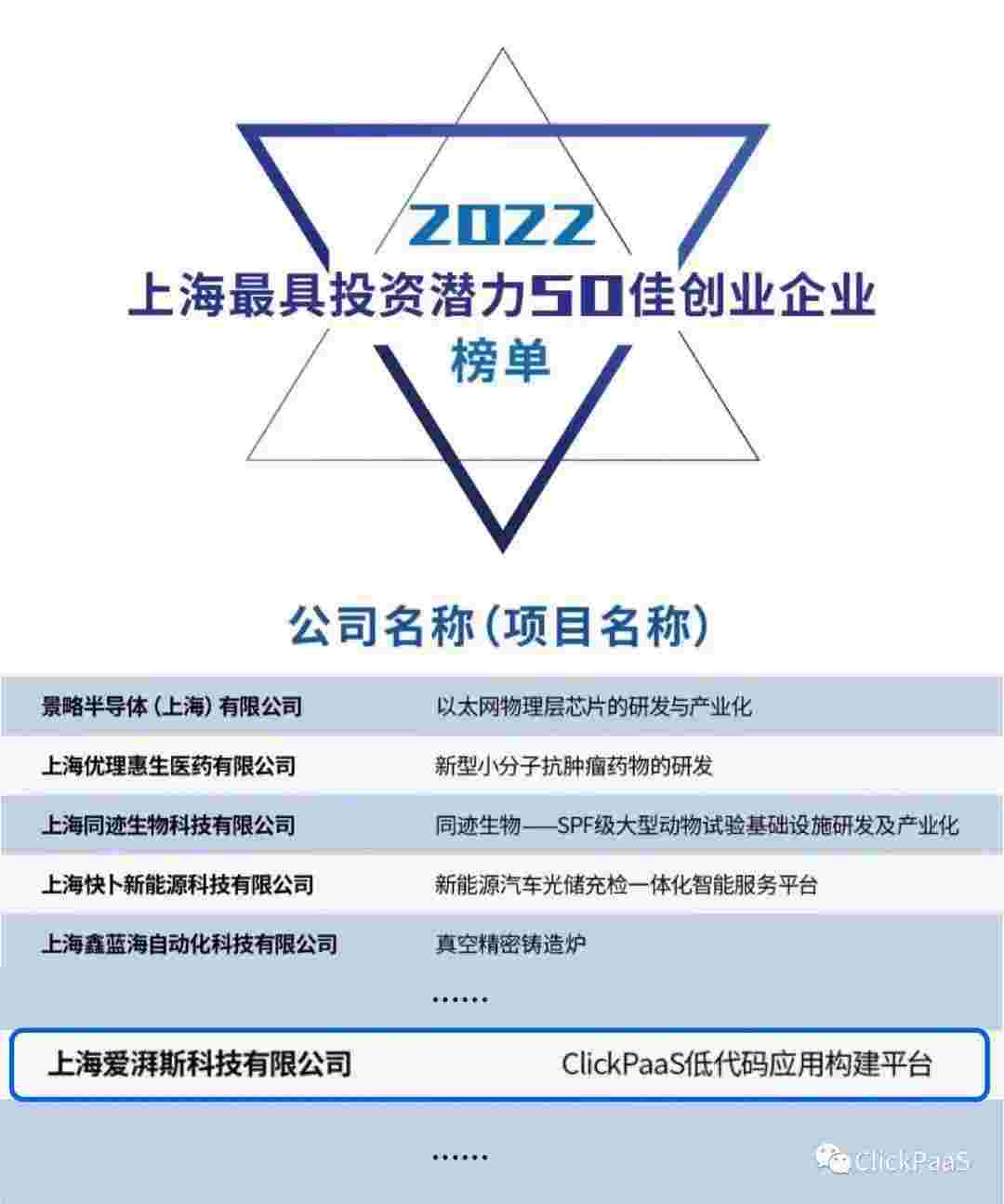NO钱包 作为国内低代码PaaS平台的领军企业,,,与120家创企入围角逐。。。期间接受了来自德同资本、、、、领中资本等知名投资机构的10位投资人组成专家评委团的背靠背盲选。。。并最终入围“2022上海最具投资潜力50佳创业企业”榜单,,被列入“上海市重点培育创业企业库”。。。
